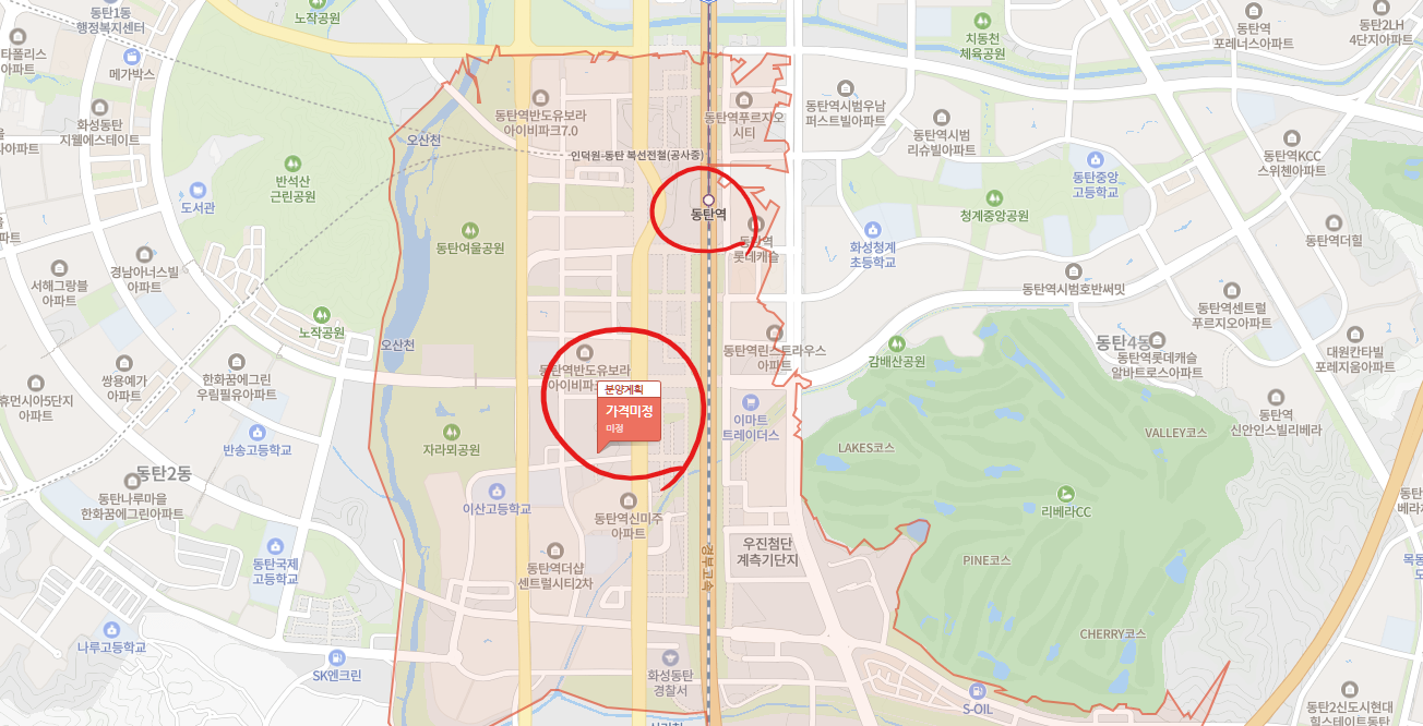 위치는 위 이미지와 같습니다. GTX-A 노선이 개통되어 운행 중인 동탄역과 가까운 위치입니다.