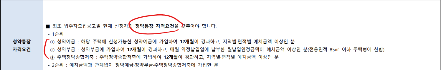 먼저 1순위 청약통장 자격 요건입니다.